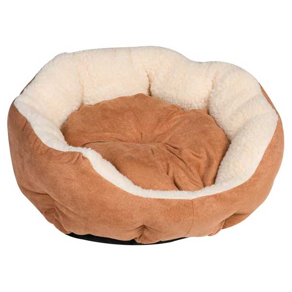 Das kuschelige Hundebett Suede ist außen mit Wildleder-Imitat und Innen mit weichem Schaffell-Imitat bezogen. Das Kissen ist herausnehmbar.