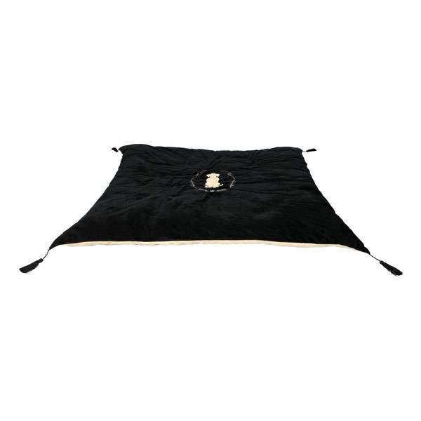 Verziert ist der Liegeplatz mit dekorativen Quasten an den Ecken, sowie einer edlen Hundekönig-Stickerei. Die Decke kann bei 30°C gereinigt werden.