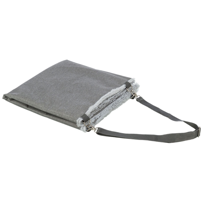 Die praktische Reisedecke lässt sich einfach zusammenfalten und mit einem Schulterriemen, der an Ösen der Decke befestigt werden kann, leicht transportieren.