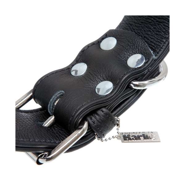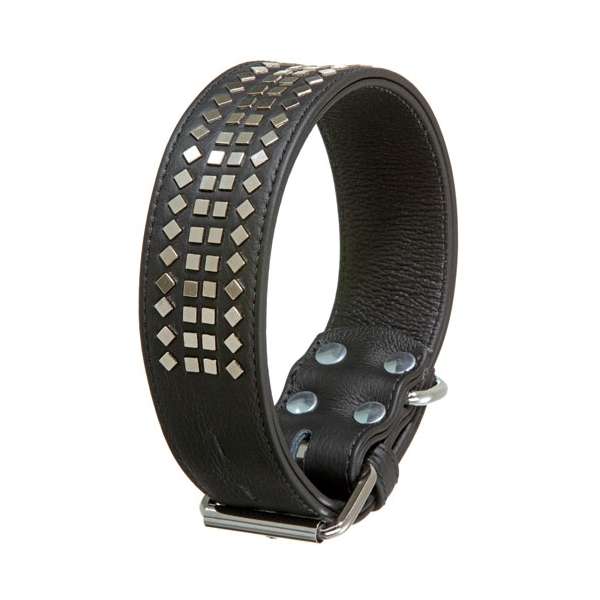 Speziell für den großen Hund gedacht ist dieses extra breite und mit viereckigen Ziernieten dicht besetzte Halsband. Handwerklich in Deutschland verarbeitete handselektierte Lederhäute sorgen für eine lange Lebensdauer. Pflegeleicht und weich bietet es Ihrem Hund einen hohen Tragekomfort. Eine zusätzliche Nyloneinlage sorgt für Stabilität und Reißfestigkeit. Das Halsband ist genietet und mit verchromten Beschlägen versehen.