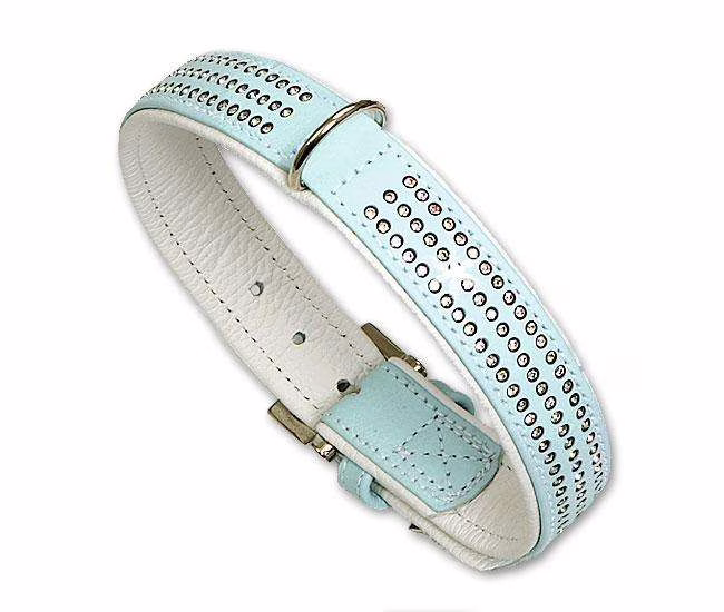 Karlie VINTAGE Strass Halsband 3-reihig – Hellblau – 30 mm, 50 cm