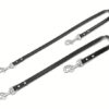 Diese Koppel zum Führen von zwei Hunden besteht aus genietetem Leder. Die Beschläge sind selbstverständlich verchromt.