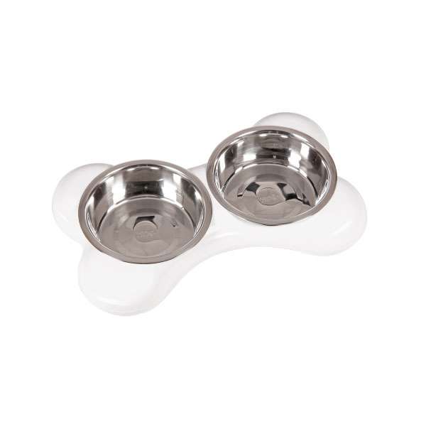 Der Doppelnapf in Knochenform bringt mit seinen frischen Farben neues Leben in die Bude!