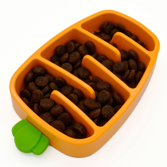 Mit dem Antischling-Napf Karotte vermeiden Sie ein zu schnelles Fressen und Schlingen bei Ihrem Hund.