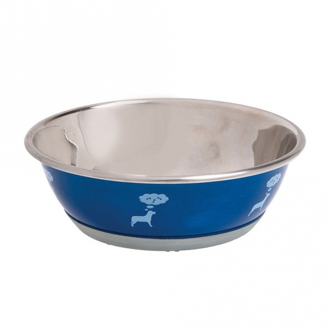 Dieser Edelstahlnapf ist in einen trendigen Kunststoffhalter eingelassen, der nicht nur durch seine modernen Farben, sondern auch durch die lustigen Aufdrucke sofort ins Auge fällt.
