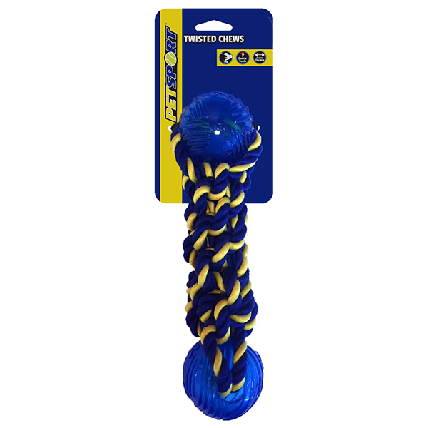 Geflochtenes Seil gefertigt aus starker, „1st class“ Baumwolle. Es gibt viele Seilspielzeuge für Hunde auf dem Markt, jedoch wenige so gut wie dieses! Die blau/gelbe Farbe kann Ihr Hund z. B. auf Rasen besonders gut erkennen.