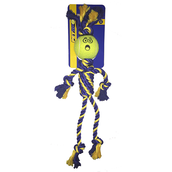 Geflochtenes Seil gefertigt aus starker, „1st class“ Baumwolle. Es gibt viele Seilspielzeuge für Hunde auf dem Markt, jedoch wenige so gut wie dieses! Die blau/gelbe Farbe kann Ihr Hund z. B. auf Rasen besonders gut erkennen.