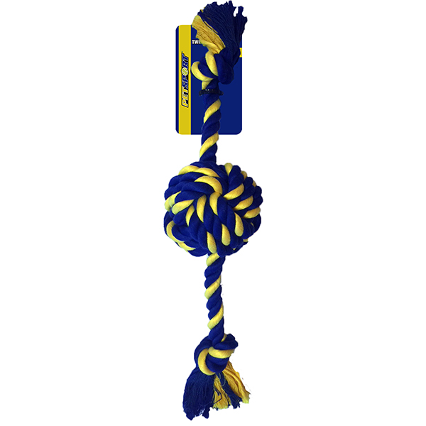 Geflochtenes Seil gefertigt aus starker, „1st class“ Baumwolle. Es gibt viele Seilspielzeuge für Hunde auf dem Markt, jedoch wenige so gut wie dieses! Die blau/gelbe Farbe kann Ihr Hund z. B. auf Rasen besonders gut erkennen.