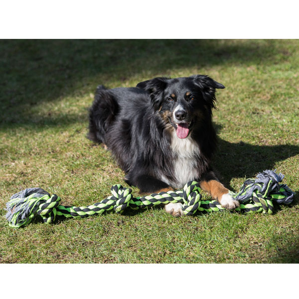 Das XXL-Kauseil ist ein vielseitig einsetzbares Spielzeug für Ihren Vierbeiner. Es eignet sich perfekt für Zerrspiele, zum Apportieren oder als Kauspielzeug mit dem praktischen Effekt, dass die Zähne dabei gleich gereinigt werden.