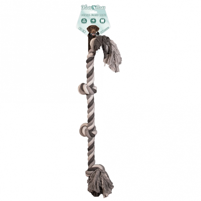Der Tau-Ring besteht aus reiner Baumwolle und reinigt und pflegt spielend das Gebiss Ihres Hundes.