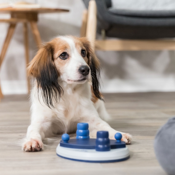 - durch Verschieben der Abdeckplatten gelangt der Hund an seine Belohnung