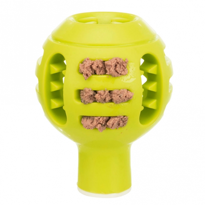 Ist dein Hund unruhig oder gestresst in ungewohnten Situationen? Der Lick’n’Snack Ball schafft Abhilfe: Du kannst das Spielzeug mit verschiedenen Leckereien befüllen, die sich dein Vierbeiner durch Schlecken erarbeiten soll. Dieser Vorgang sorgt dafür, dass er abgelenkt ist und sein Stresspegel sinkt. Im Inneren bietet der Ball Platz für größere Snacks, die seitlichen Rillen eignen sich dagegen hervorragend für Leberwurst oder andere Pasten.