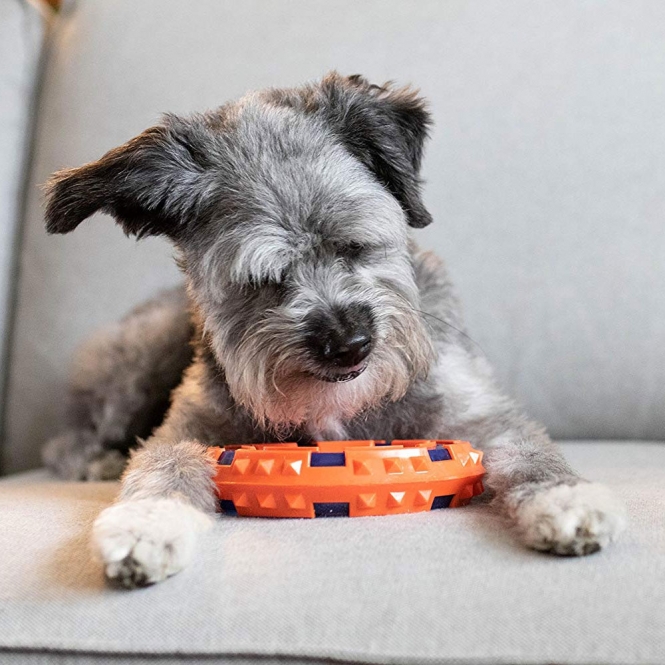 Der Mega Tuff Spike Ring besteht aus TPR und hat einen Durchmesser von ca. 15 cm. Das strapazierfähige Material hält auch längerem Kauen stand und die Rillen und Zacken erleichtern das Greifen für Mensch und Tier und reinigen zusätzlich die Hundezähne. Perfekt für Zieh- und Wurfspiele.