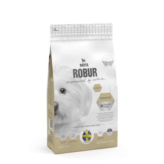 Mais*, Huhn 28% (getrocknetes Hühnerfleisch 24%, frisch zubereitetes Hühnerfleisch 4%), Reis*, Knochenfett, Rentier (frisch zubereitetes Rentierfleisch) 4%), getrockneter Rübenbrei*, Maiskeime*, tierisches Eiweiß (hydrolisiert), Mineralstoffe, Chicorée-Inulin* (FOS 0,63%), Leinsamen*, Hefe*, Hagebuttenmehl* 0,3%, getrocknete Blaubeeren* 0,01%, getrocknete Preiselbeeren* 0,01%. *
