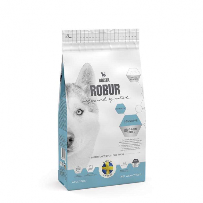 Zusammensetzung: Hühnchen 32% (getrocknetes Hühnchen 24%, frisches schwedisches Hühnchen* 8%), getrocknete Kartoffeln*, Erbsenstärke*, frisch zubereitetes Rentier* (8%), Knochenfett*, getrocknete Eier*, hydrolysiertes Hühnchen, getrocknete Zuckerrübenschnitzel* (entzuckert), Mineralstoffe, Leinsamen*, Lignozellulose*, Zichorien-Inulin* (FOS 0,63%), Hefe* (davon ß-1,3/1,6- Glucane 0,05%), Glukosamin* (0,05%), Chondroitinsulfat* (0,004%).