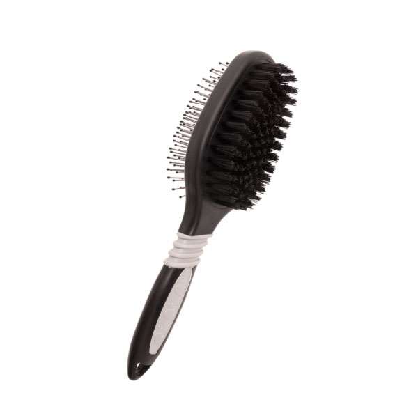 Diese 2in1 Bürste dient auf der einen Seite als Borsten- und auf der anderen Seite als Zupfbürste und ist so eine tolle Komplettlösung zur Fellpflege.