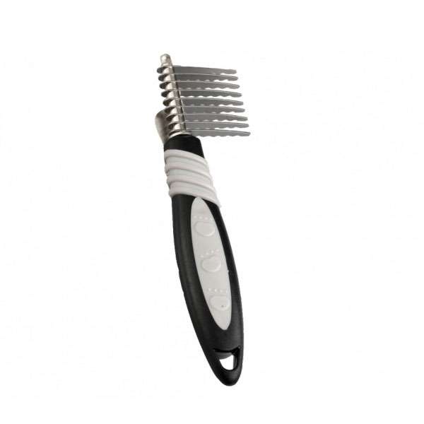 Die zweireihige Unterfellharke ist ideal zum raschen und effizienten Entfernen loser oder ausgefallener Haare der Unterwolle.