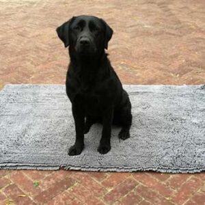 Die Doggy Dry Doormat Hundetürmatte saugt Schmutz und Wasser auf wie ein Schwamm, ist extrem haltbar und super weich. Die Matte trocknet schnell, nimmt keine Gerüche an und ist antibakteriell. Die anti-rutsch Unterseite hält die Matte an ihrem Platz. Hinter der Eingangstüre verhintert sie, dass der Pfotenschmutz ins Haus getragen wird.