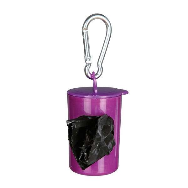 Der Beutelspender aus stabilem Kunststoff verfügt über eine seitliche Öffnung, durch die die Kotbeutel ganz einfach herausgezogen werden können. Der Karabinerhaken ermöglicht eine Befestigung an Leine oder Halsband bzw. Gürtelschlaufe des Halters.
