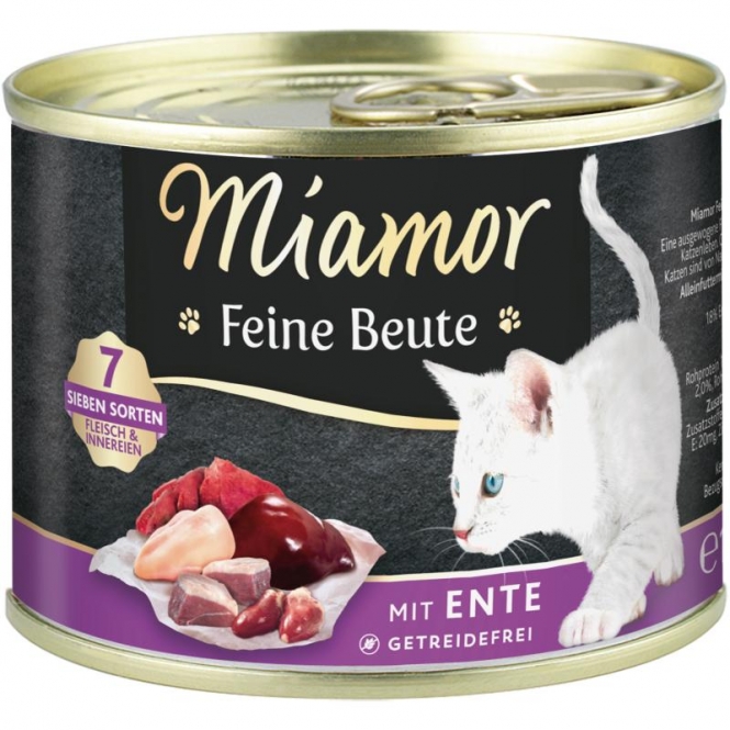 Miamor Feine Beute – 7 Sorten Fleisch & Innereien. 65% Fleisch & Innereien. Miamor Feine Beute: 7 Sorten für 7 Leben. Eine ausgewogene Fleischkomposition für ein langes Katzenleben. Getreidefrei und artgerecht, denn Katzen sind von Natur aus Fleischfresser (Carnivore).