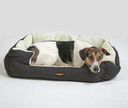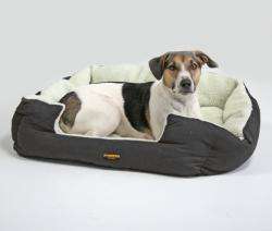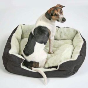 Kuscheliges und superbequemes Hundebett. Außenrand Velourstoff, Rand innen aus weichem Teddyplüsch. Boden aus Kunststoff als Nässeschutz. Wendekissen lose eingelegt: eine Seite Velour wie Außenrand, andere Seite Teddyplüsch wie Innenrand. Ihr Liebling wird begeistert sein.