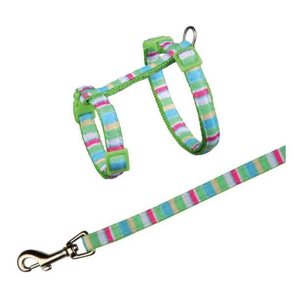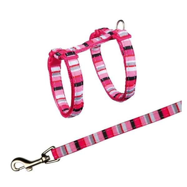 Das Katzengeschirr im modernen Streifendesign besteht aus Nylon mit aufgenähtem Motivband. Durch eine spezielle Fütterung, die zudem wasserabweisend ist, ist das Geschirr extra weich und somit besonders angenehm zu tragen.