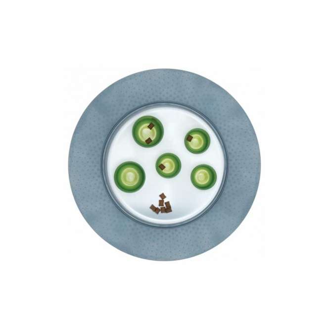 Sein innovatives Design spricht die Instinkte der Katze an und stimuliert sie, mit der Pfote aktiv nach kleinen Nahrungsmengen zu greifen.So wird die Aufnahme zu großer Portionen verhindert.