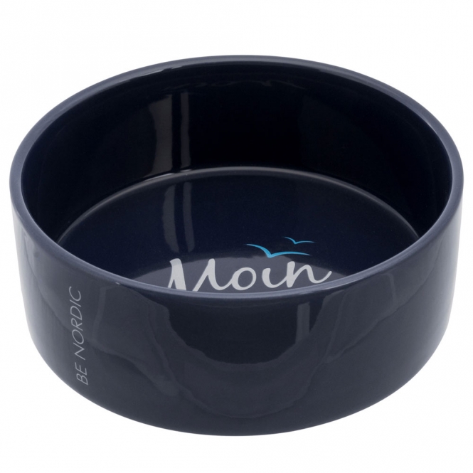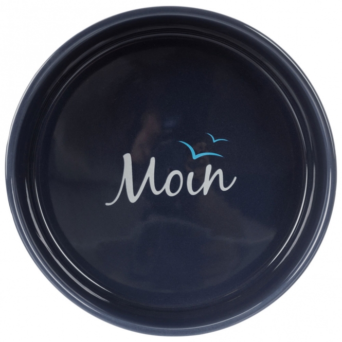 Schöner Keramiknapf mit Moin-Schriftzug am Napfboden.