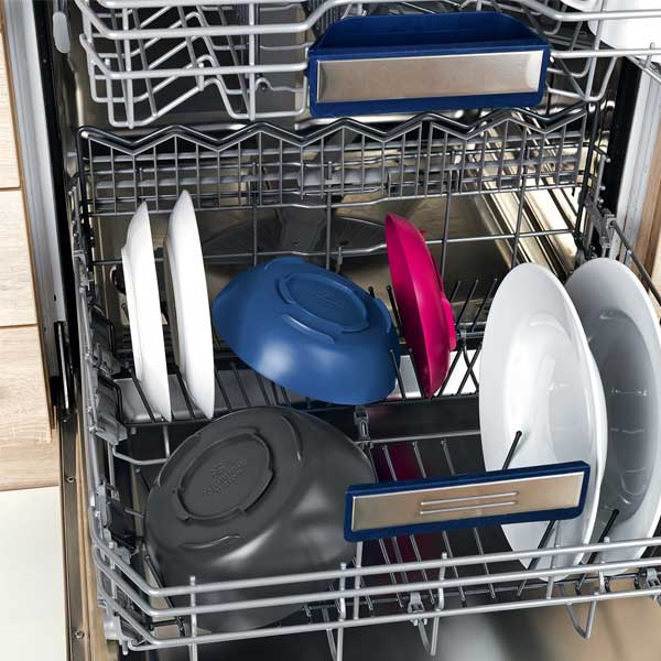 Bei dem 2-in-1-System sind Napf und Platzmatte per Drehverschluss miteinander verbunden. So wird ein Umkippen und Verschütten von Futter verhindert. Die Platzmatte ist zudem rutschfest und selbsthaftend, der Napf ist spülmaschinengeeignet und so im Handumdrehen wieder sauber.