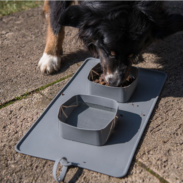 Der rollbare Silikon-Doppelnapf ist ein absolut idealer Reisepartner für alle längeren Strecken mit Hund.