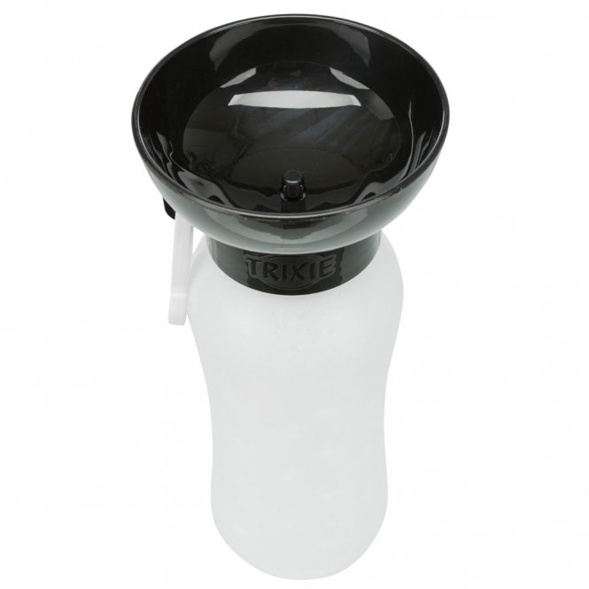 - durch Drücken der Flasche gelangt Wasser in den Napf-Aufsatz