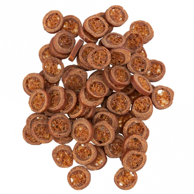 Zusammensetzung: Hühnerfleisch (41 %), Süßkartoffelmehl, Makrele (9 %), Kartoffelmehl, Glycerin, Erbsenfaser, Cranberry, Eipulver, Hühnerleber, Bierhefe, Karotten, Paprika | glutenfreie Rezeptur | 0 % Zuckerzusatz | Kühl und trocken lagern.
