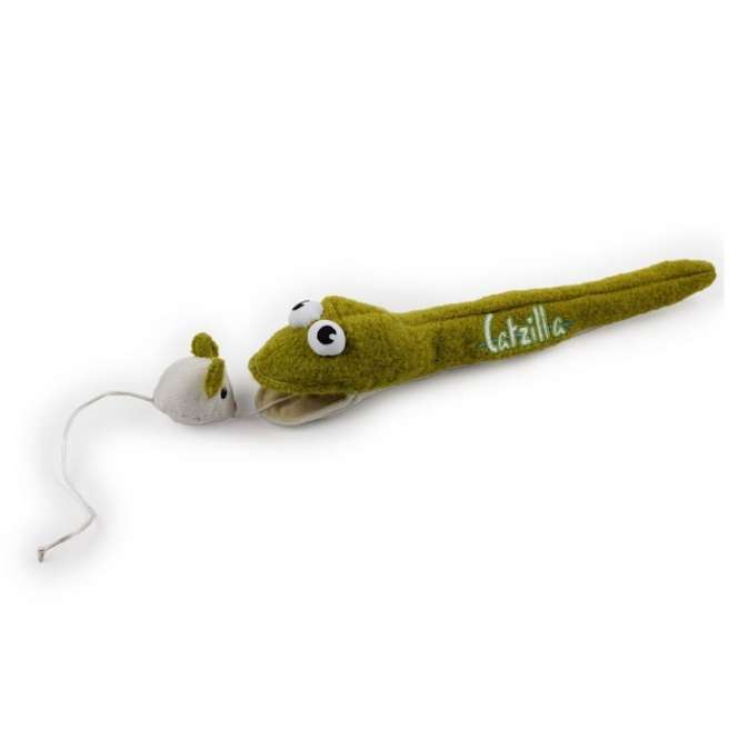Der Catzilla Door Knob dangler von All for Paws ist mit einem Loch ausgestattet, mit dem er an einer Türklinke aufgehängt werden kann und dort darauf wartet bespielt zu werden. Außerdem ist er extra groß, was es zu einem tollen Spielzeug für alle Katzen macht, die gerne Spielen.