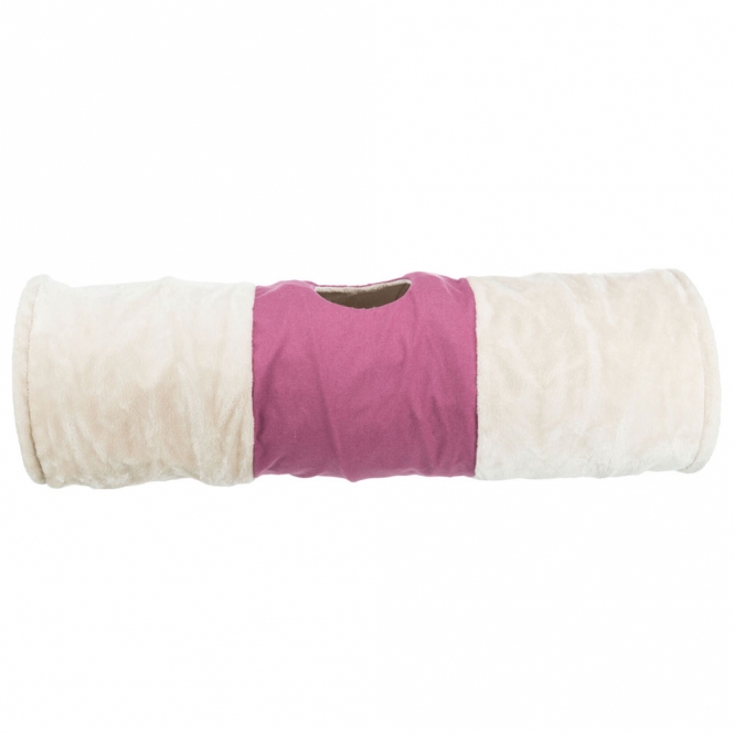 Der Spieltunnel aus weichem Plüsch (Polyester) bietet Ihrer Katze oder auch Ihrem Welpen einen idealen Platz zum Zurückziehen und Entspannen. Gleichzeitig regt er durch die eingenähte Raschelfolie zum Spielen an.