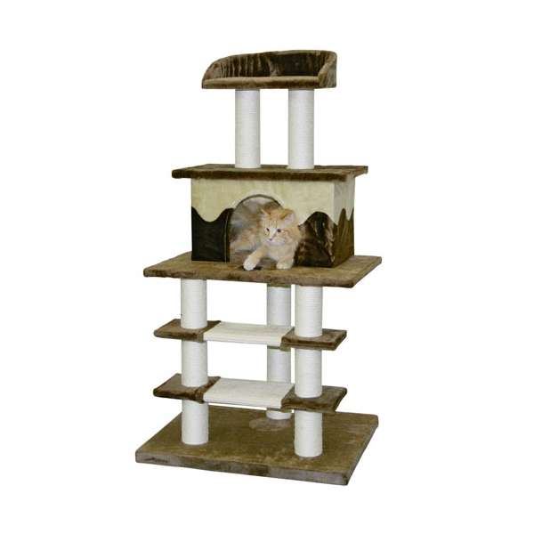 Abenteuer und Spielvergnügen bietet dieser, 70 cm hohe, mit Tunnel ausgestattete Kratzbaum. Auf der gepolsterten Liegefläche lässt es sich herrlich ausspannen und relaxen. Die Fellmaus am Gummiband lädt jede Katze zum Spielen ein.