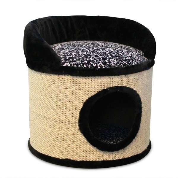Er besteht aus einer Bodenplatte mit den Maßen ca. 40 x 58 cm (BxT), einer Platte in der gleichen Größe, die mit einem Loch ausgestattet ist (ca. 15,5 cm Durchmesser), drei Sisalstämmen mit einem Durchmesser von ca. 7 cm und einer gemütlichen Höhle als Rückzugs- und Schlafgelegenheit. Die Höhle hat Außenmaße von ca. 41 x 31,5 x 30 cm (BxHxT) und ein Eingangsloch mit einem Durchmesser von ca. 18 cm. Zusätzlich ist ein Sisalseil vorhanden, welches sich super zum Spielen eignet. So hat Ihr Stubentiger alles, was er benötigt: Kratzmöglichkeit, gemütliche Schlafmöglichkeit und Spielspaß!