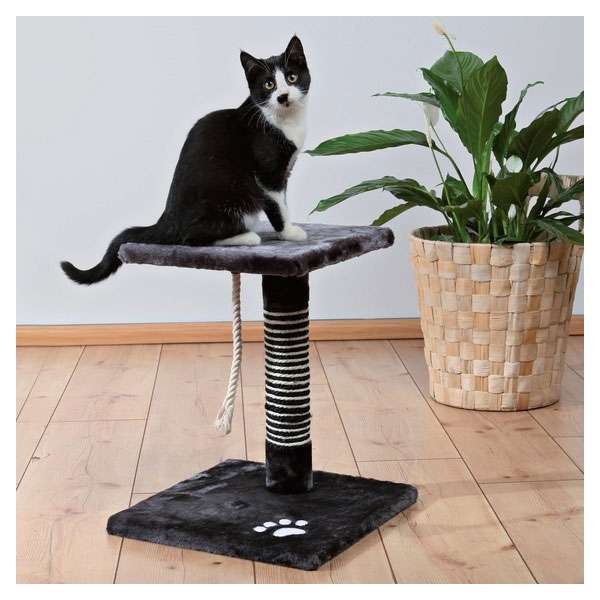 Kratzbaum speziell für Kätzchen. Mit Plüsch-Bezug und Sisalkratzfläche. Der Stamm ist mit Natursisal umwickelt, die Liegeplatte ist mit einem Spielzeug am Gummiband bestückt.