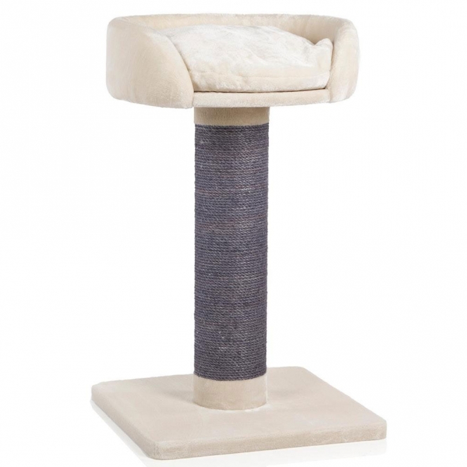 Unser Kratzbaum Baza mit integriertem Fellpflegebogen bietet deiner Samtpfote alles, was sie braucht – Sisalstämme zum Kratzen und Klettern sowie eine gemütliche Liegemulde zum Ausruhen.