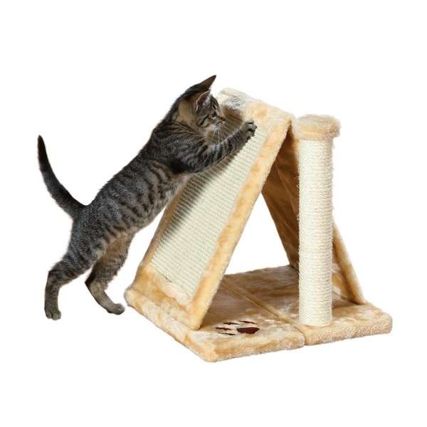 Der Trixie Kratzbaum Nerja bietet alles, was das Katzenherz begehrt. Er ist mit einer Höhle versehen, die kopmlett mit weichem Plüsch ausgestattet ist. Zusätzlich ist in der Höhle und auf dem Liegeplatz ein Kissen vorhanden, welches bei 30° C per Handwäsche gereinigt werden kann. Die Stämme sind mit Natursisal umwickelt. Das wellenförmige Brett ist mit einer Kratzfläche austgestattet, die eine ideale Möglichkeit zum Krallenschärfen darstellt.