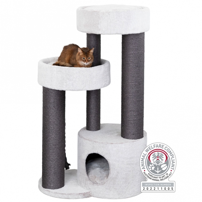 Der Kratzbaum Britt von duvoplus ist ein robuster Kratzbaum, der viele Möglichkeiten bietet. 4 große Plattformen bieten eine gute Aussicht und einen Ort zum Ausruhen.