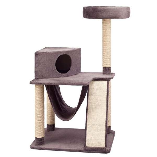 Der Karlie Kratzbaum Mary bietet Ihrer Samtpfote besonders viele Extras! Das kuschelige Liegebett mit toller Aussicht von ganz oben und die gemütliche Hängematte sorgen für Entspannung, eine Rückzugsmöglichkeit stellt die Höhle zur Verfügung und das Kratzbrett ist neben den Sisalstämmen eine weitere ideale Möglichkeit zum Krallenwetzen.