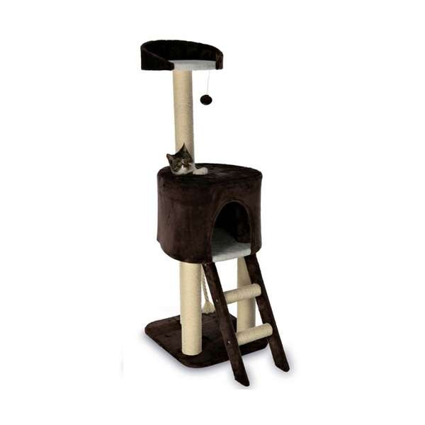 Der Trixie Kratzbaum Rolanda bietet Ihrer Samtpfote alles, was das Katzenherz begehrt. In der großen Höhle und auf der umrandeten und gepolsterten Liegefläche kann sich gemütlich ausgeruht werden, Gelegenheit zum Krallenschärfen bieten die Stämme, die mit Natursisal umwickelt sind, sowie die Leitersprossen. Der Kratzbaum hat einen weichen Plüsch-Bezug, unter der Höhle ist ein Spielseil angebracht und unter der oberen Liegefläche befindet sich noch ein Spielzeug am Gummiband. Die Höhle ist oben mit einem Durchschlupfloch ausgestattet.