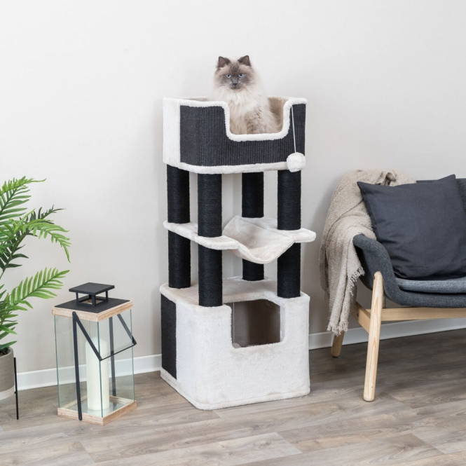 Unser Kratzbaum zur Wandmontage bietet deiner Katze mehrere Rückzugsmöglichkeiten – in zwei kuscheligen Höhlen kann sich deine Samtpfote verstecken und ausruhen oder in der gemütlichen Hängematte relaxen. Auch die Oberseite des Kratzbaums kann als Liegefläche und Aussichtsplattform genutzt werden. An der großzügigen Sisalkratzfläche kann dein Stubentiger optimal klettern und kratzen. Der kastenförmige Kratzbaum lässt sich spielend leicht an der Wand befestigen und passt in jedes Wohnzimmer.