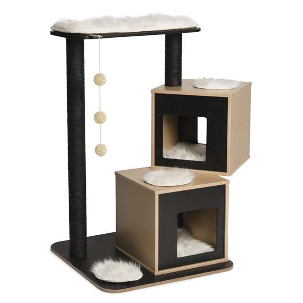 Als großer Bruder von V-Base ist der V-Double mit seinen Zwillingshöhlen ideal für 2 oder mehrere Katzen geeignet. Die vielen Ebenen laden zum Verweilen ein, bieten aber auch die Möglichkeit zum Klettern, Springen und Spielen.