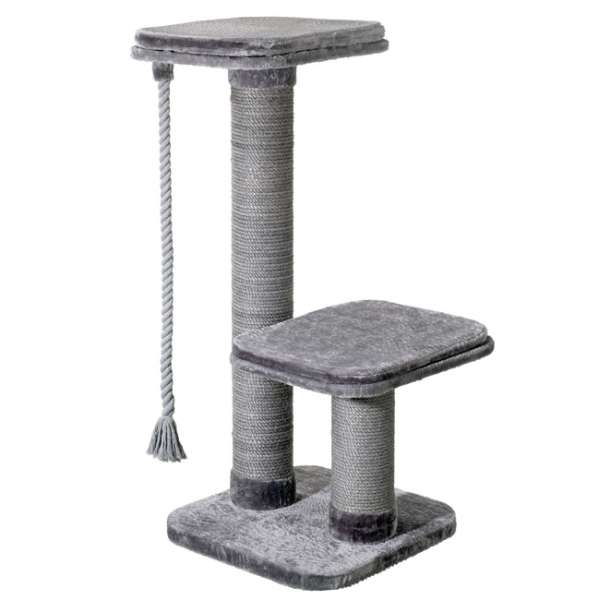 Hochwertiger Edelplüsch sorgt für ein gemütliches Ausruhen und Schlafen auf den abnehmbaren Liegekissen. Ein herabhängendes Seil lädt zum Spielen ein. Der Kratzbaum ist besonders standsicher durch die extra schwere und stabile Ausführung. Mit Anti-Rutschfüßen. Kissen waschbar bei 30 °C.