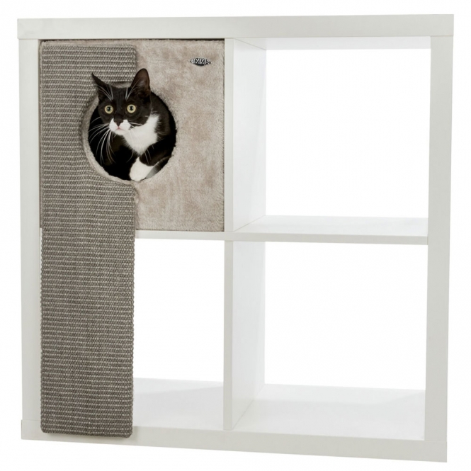 Du suchst nach einer kuscheligen Rückzugsmöglichkeit für deine Katze? Unsere Höhle für Regale lässt sich optimal in die Wohnlandschaft einfügen, z. B. passt die Höhle perfekt zu den quadratischen Formen der IKEA Kallax Regale. Die Kuschelhöhle ist mit weichem Plüsch und einer gepolsterten Liegefläche ausgestattet. Zudem befindet sich an der Außenseite eine großzügige Sisalkratzfläche, an der dein Stubentiger hinaufklettern kann.