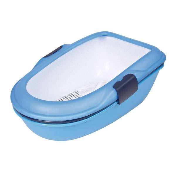 Haube und Unterwanne werden durch Schiebeverschlüsse ganz einfach und trotzdem fest miteinander verbunden. Nicht nur die transparente Tür, sondern die komplette große Abdeckung inklusive der Filtervorrichtung kann nach oben aufgeklappt werden, so dass die Reinigung der Toilette durch den großen Zugang komfortabler wird. Im Eingangsbereich ist eine Beutelverankerung integriert, in die bei der Reinigung einfach ein Beutel eingehangen werden kann, so dass man nicht mehr zwei Hände benötigt, um den Beutel in der richtigen Stellung zu halten (Beutel ist nicht im Lieferumfang enthalten). Der vorhandene Aktivkohlefilter, der unangenehme Gerüche vermindert, kann selbstverständlich ganz einfach ausgetauscht werden. Die Toilette eignet sich auch ideal für größere Katzen.