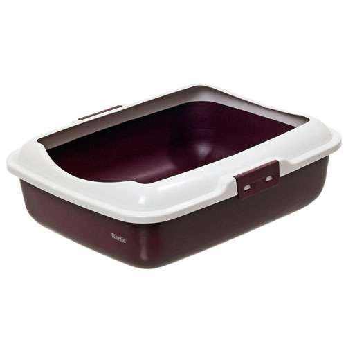 Praktische Katzentoilette mit abnehmbarem Rand, der mit zwei Clips seitlich befestigt wird. Der Rand ist vorne abgerundet und bietet der Katze somit einen besonders einfachen Einstieg.
