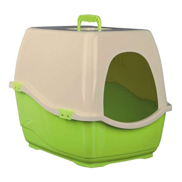 Die Toilette ist mit einer rosa-transparenten Schwingtür und einem Kohlefilter bestückt. Die Haube lässt sich für die Reinigung ganz einfach durch lösen der 4 Klickverschlüsse abnehmen.