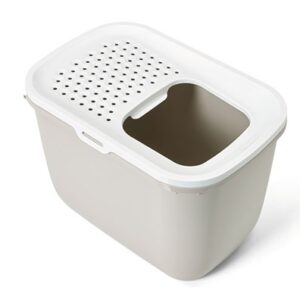 Gefertigt aus robustem Kunststoff, ist die Katzentoilette langlebig und pflegeleicht. Die dezente Farbkombination in Salbei/Weiß fügt sich harmonisch in jedes Zuhause ein.